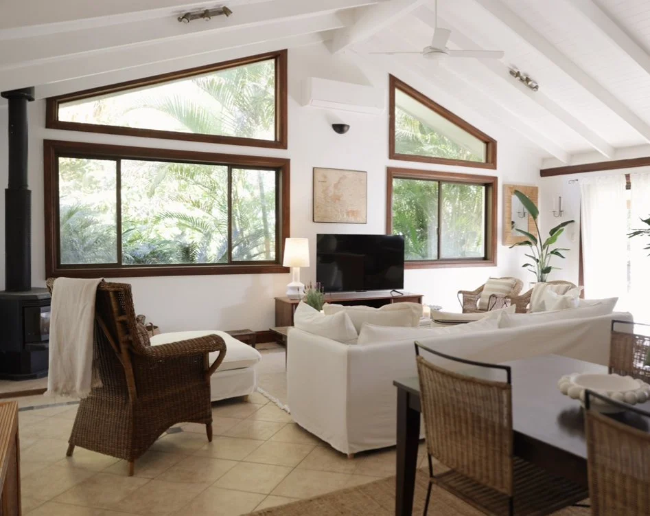 For this project, I leaned into a soft coastal–meets–rustic style. The aim was to respect the home’s timber details while lightening the overall palette to create flow and calm. Neutral furnishings layered with natural textures—linen, rattan, and raw wood—set the tone, while subtle styling accents like fresh greenery, ceramics, and textiles brought softness and soul. The result is a space that feels grounded in nature, relaxed in spirit, and timeless in design.